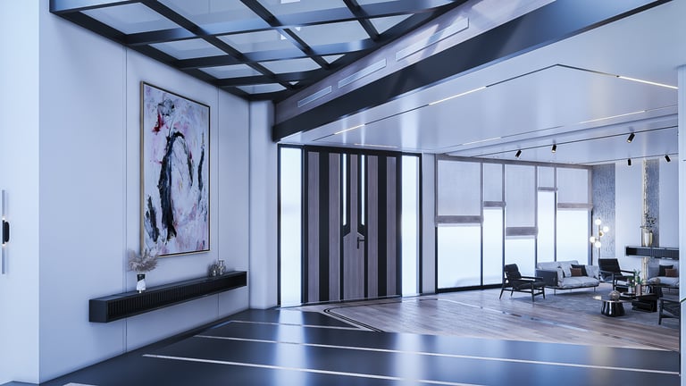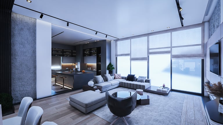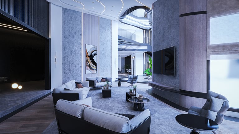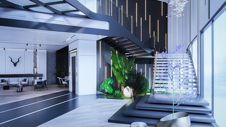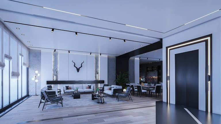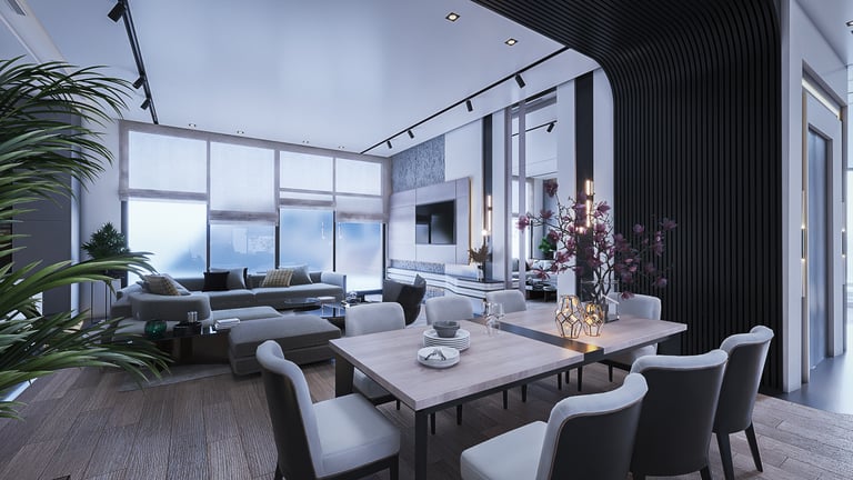 The space for the lobby, the sitting place, and the living space that is in contact with the These spaces were unified and opened together to give the character of vitality and flexibility between the spaces and make the place with the building materials and furnishings used more comfortable and elegant.