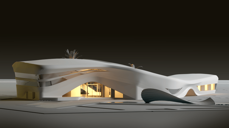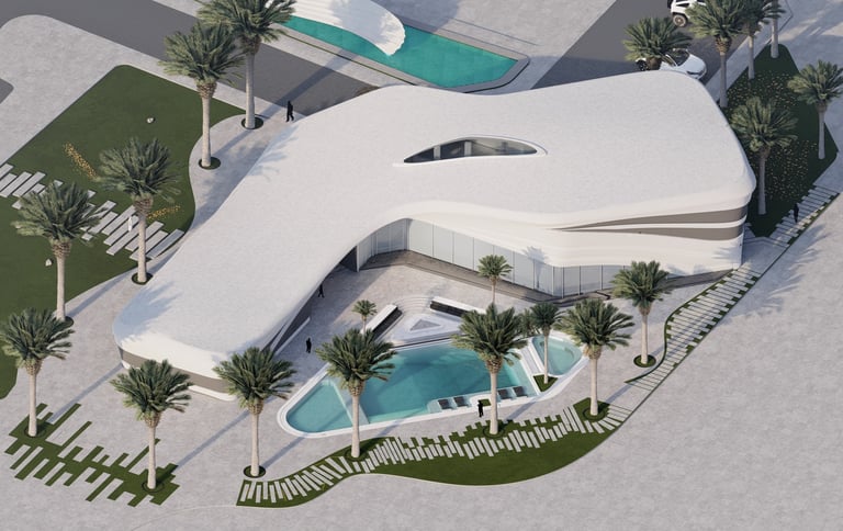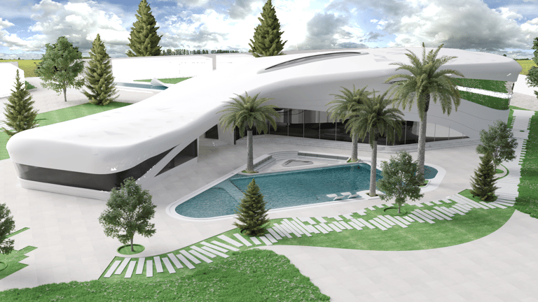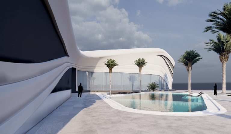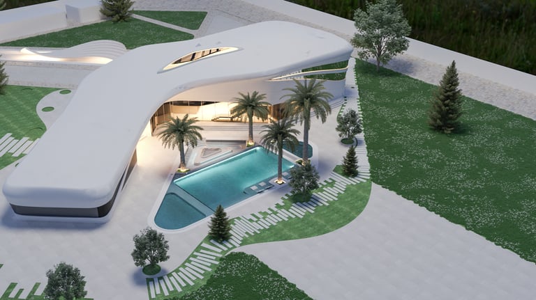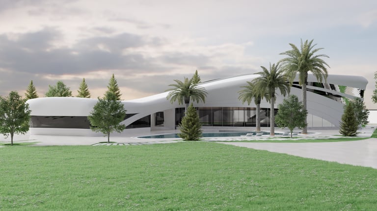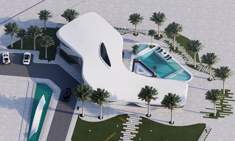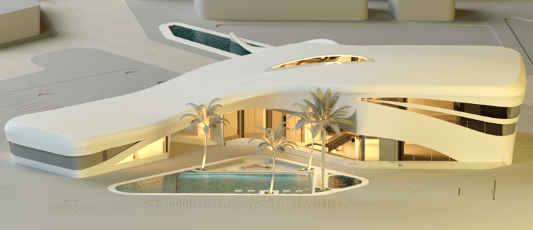 Residential villa in Abu Dhabi-UAE, with a build area of 1000 sq.m, on a plot area of 23,000 sq.m, with organic style.