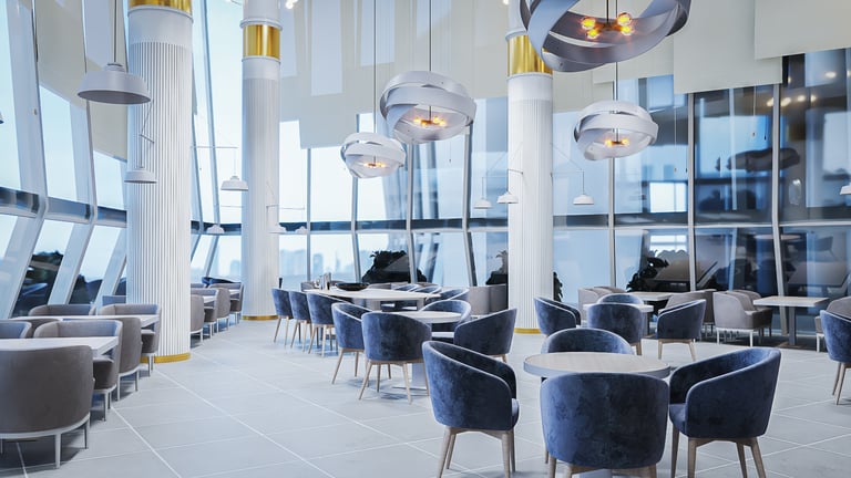 In a 900 sq.m design for a restaurant in Abu Dhabi, our client wanted to expand to add a coffee shop and entrance to the restaurant.